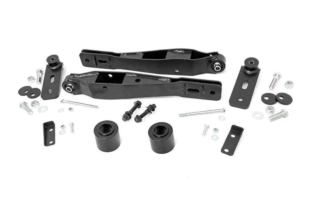 Give your Jeep Patriot aggressive good looks with Rough Country's 2in Leveling Kit! This innovative and easy-to-install kit offers enough increased ground clearance to run larger tires and levels the front of the vehicle with the rear for a meaner look that's sure to turn heads.Rough Country's 2in Jeep Patriot Lift Kit features a set of upper and lower strut spacers that work together to provide the optimum amount of lift while protecting the geometry of your CV angles. A set of innovative lower control arms are also included, and feature Rough Country's X-Flex Joints, which promote a better bushing lifespan and overall articulation, and are able to handle side load more like the factory design than other kits on the market. These adjustable arms also make it much easier to dial-in the perfect alignment!This easy-to-install kit features a 100% bolt-on installation process with no cutting or drilling required to install! Includes a Lifetime Replacement Guarantee!
