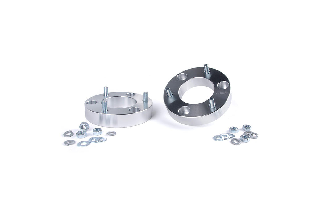 Level your 2017 Titan with Rough Country's head-turning Aluminum Leveling Spacer. This easy to install, innovative Aluminum Spacer combines great looks and strength, while providing 2 inches of lift. This spacer features aircraft quality, T6061 Billet Aluminum offering enhanced durability against elements like rain and rust. This simple design is easy to install with a 100% bolt-on installation process that can be done in mere hours. Best of all, this simple kit levels the front of your truck with the rear, giving your vehicle an overall more aggressive appearance and room for up to 33-inch tires.